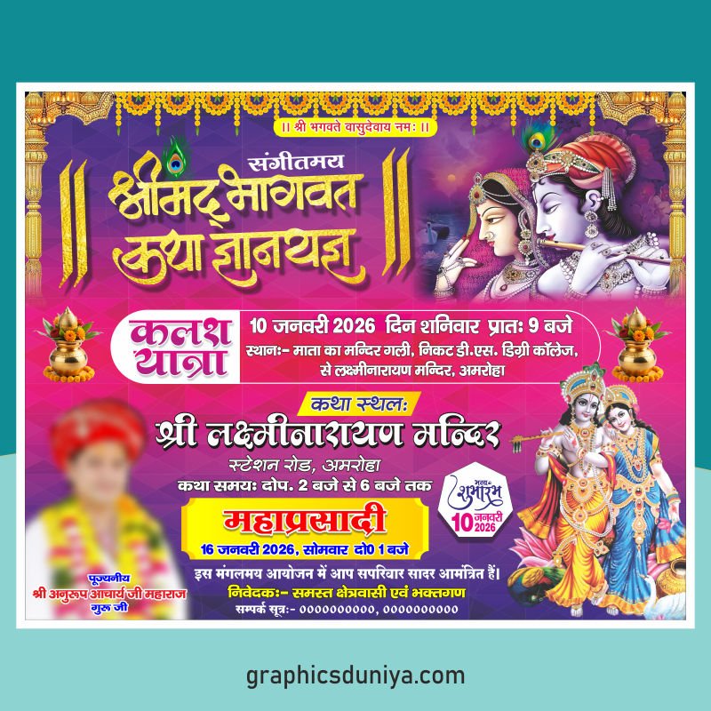 Sangeetmay Shrimad Bhagwat Katha Banner Design cdr file