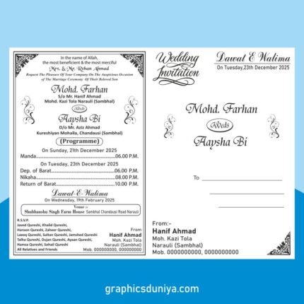 A Shadi Card serves as the formal announcement and invitation to the most significant event in the lives of the couple and their families. It must convey necessary logistical information while reflecting the family’s style, tradition, and reverence for the event.